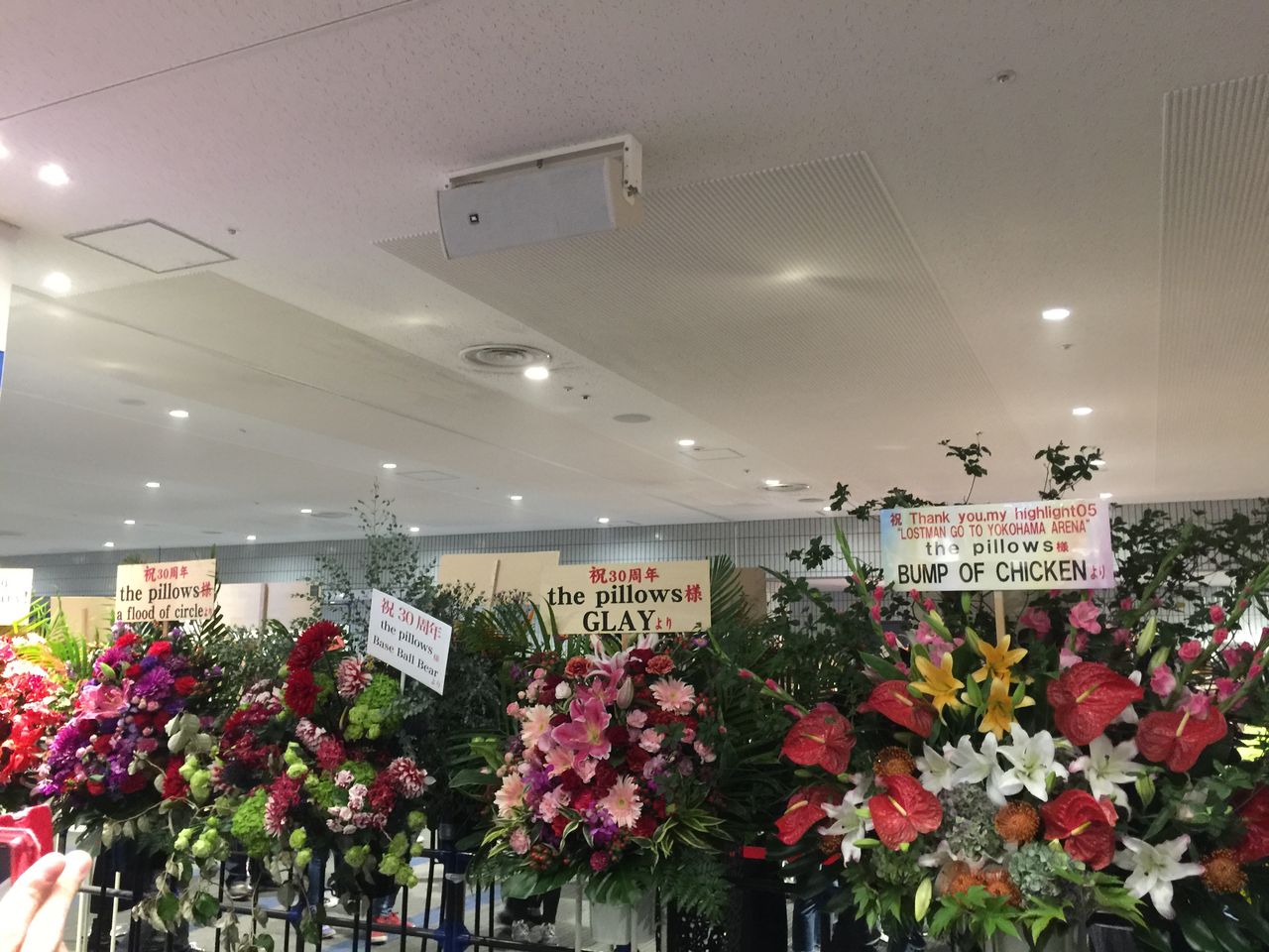 開場する。入ってすぐのところにお祝いの花輪があった。Mr.Children、GLAY、BUMP OF CHICKEN。様々なバンドから贈られた花の束だ。スマートフォンで撮影する人たちでごった返していた。コインランドリーに荷物を預け、指定席に向かう。会場内はたくさんの人が行き交っていた。軽食を求める人たち。久しぶりの再会を喜ぶ女性。トイレにも列ができている。多くの人がピロウズのTシャツを着ていた。でも、私はそこでもやはり一人だった。こんなにバスターズがいるのに、言い知れない疎外感を感じてしまう。お祝いムードにふさわしくない感情は、封じ込もうとすればするほど顔を出して、留まるところを知らなかった。