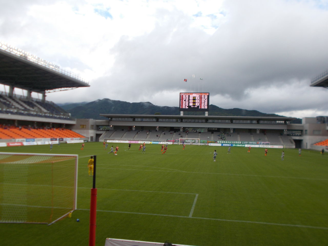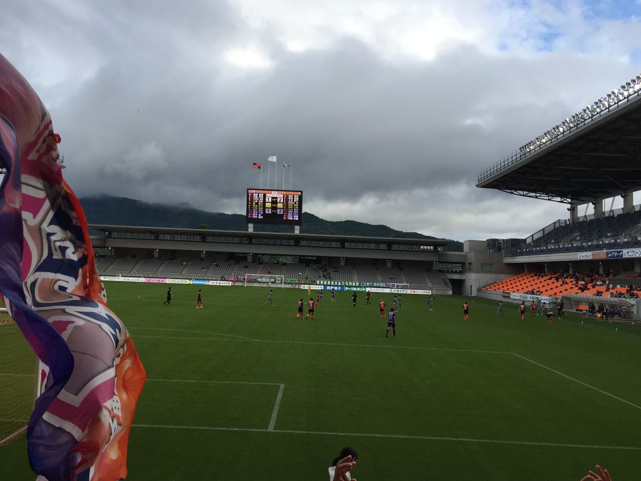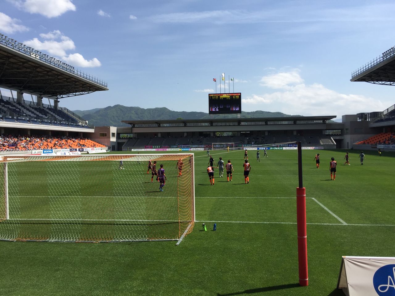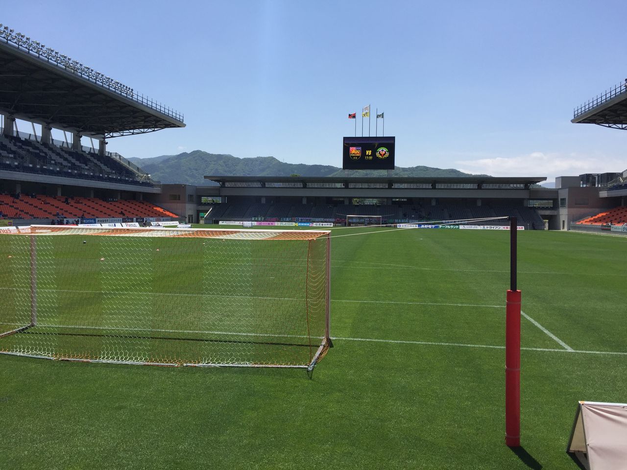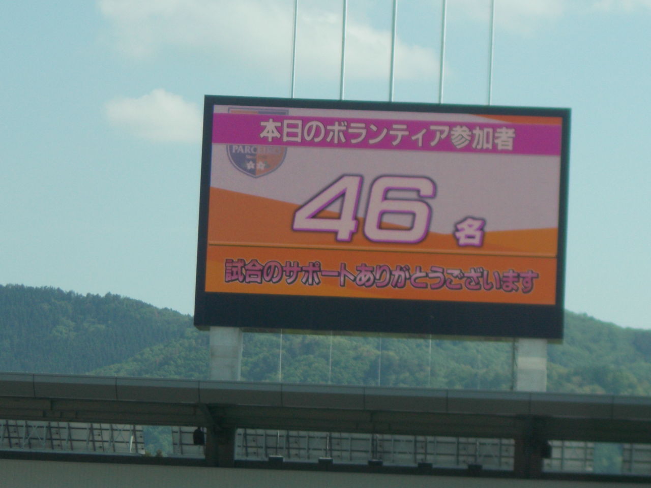 また、この日は新たな試みとして、座席のブロックごとに番号が振られていました。目印になって分かりやすいですね。これはバックスタンドのものですが、ホームゴール裏はリンゴ、メインスタンドにはブドウが貼られていました。