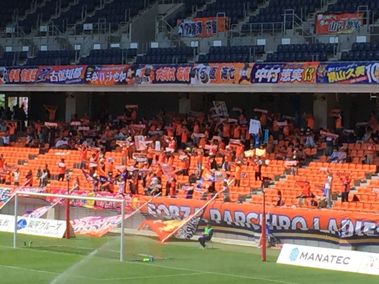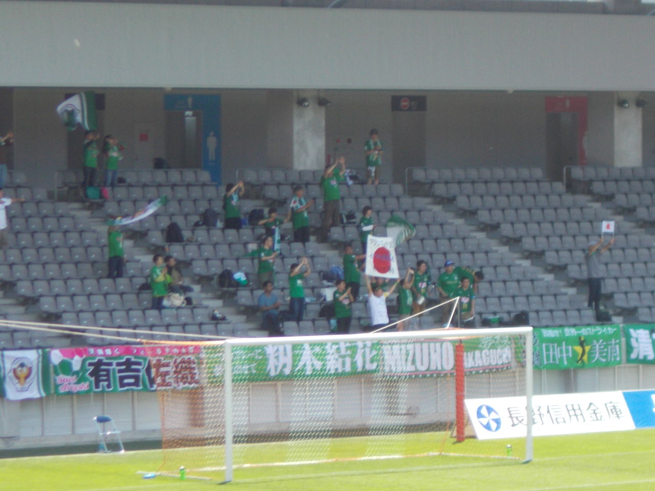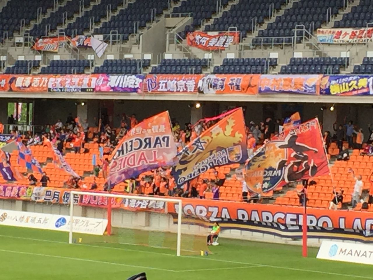 この日のパルセイロレディースのサポーターは100人ほど。勝てていないのにもかかわらず、応援を続けていて頭が下がる思いです。