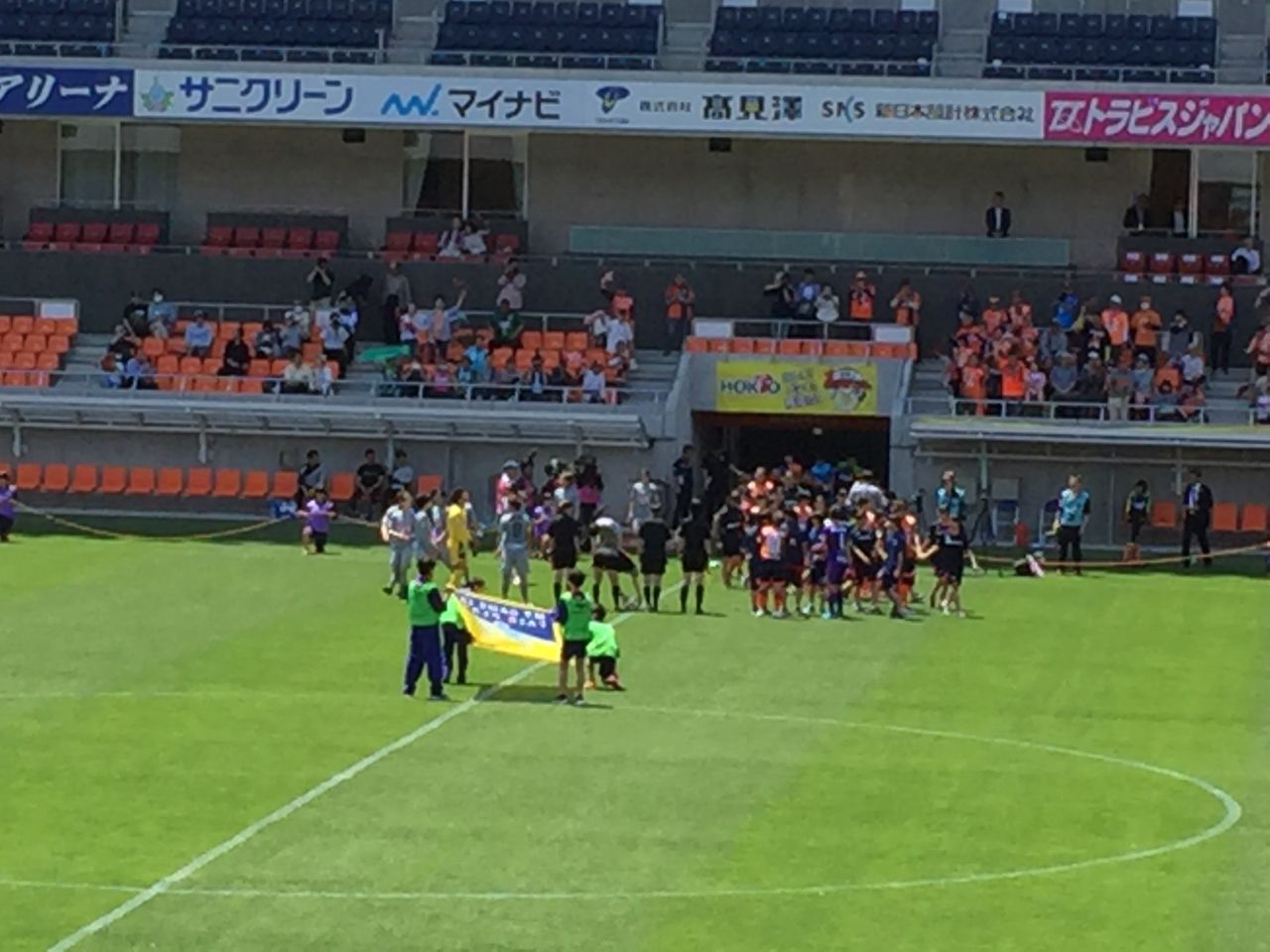 試合後には#1池ヶ谷選手と#5大河内選手がハイタッチを行っていました。引き分けでもやってくれるんですね。皆嬉しそうでした。