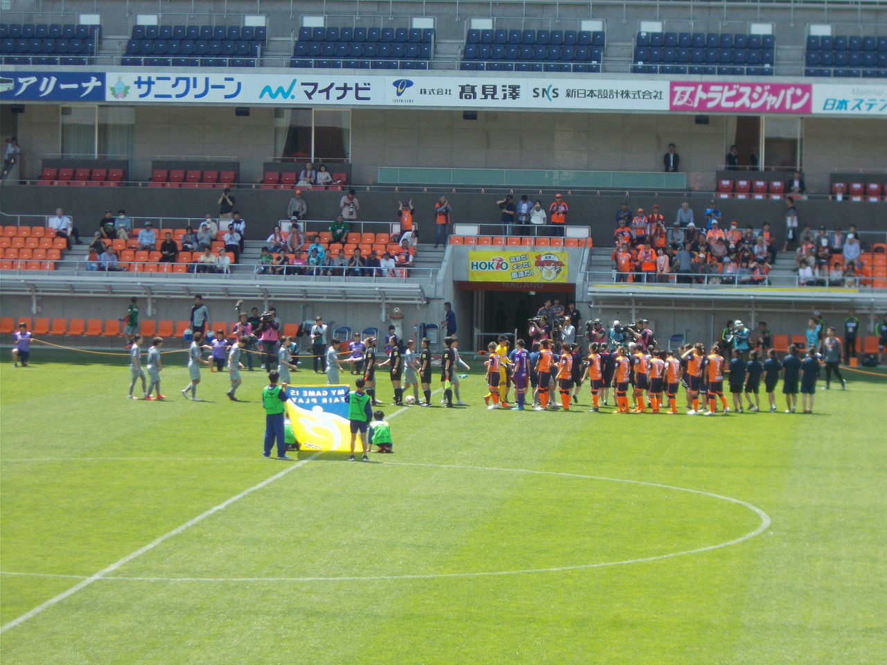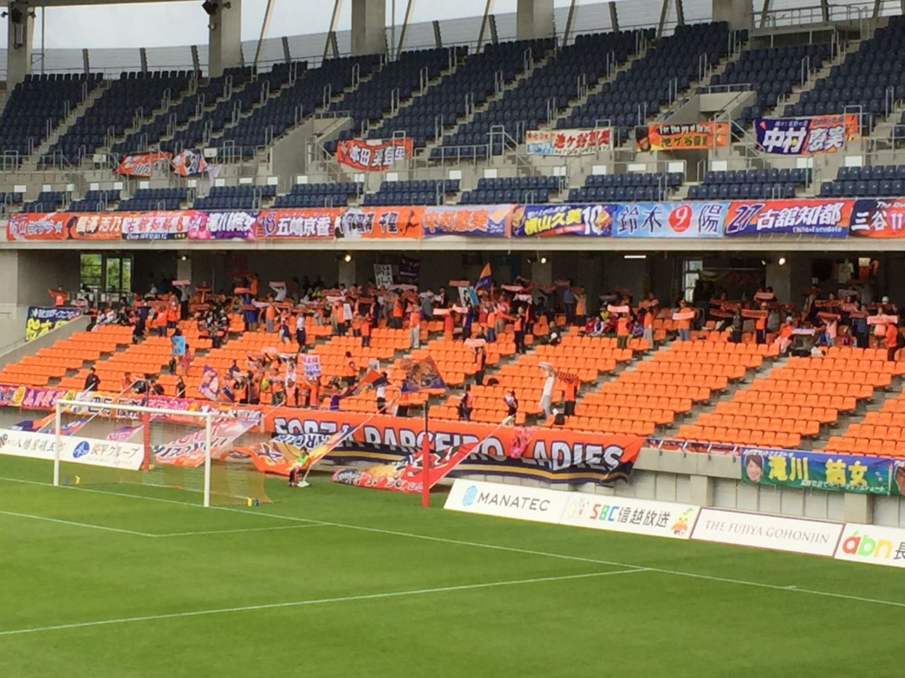 一方の新潟レディースのサポーターは20人ほど。同日にトップチームの試合もあるのでやや少なめですね。しょうがない。
