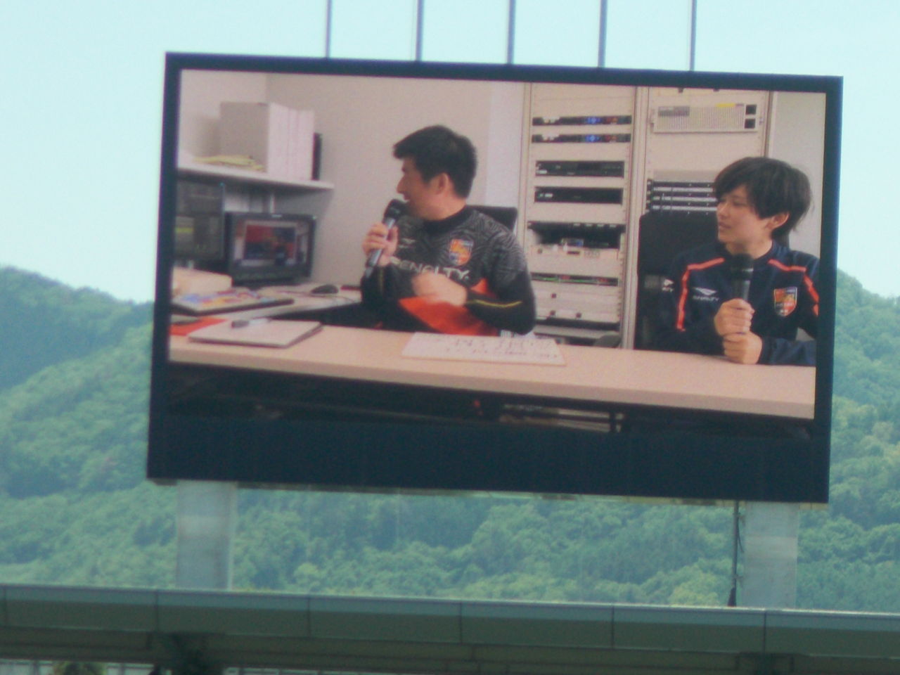 ムービー付きで#5大河内選手の紹介をしたり、湘南乃風の「我楽多」を流していたりしました。